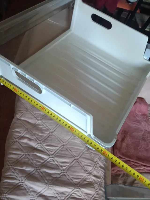 Cajón organizador de plástico blanco para congelador. - Diseño con asas para fácil extracción. - Superficie con estrías para evitar que los alimentos se peguen.