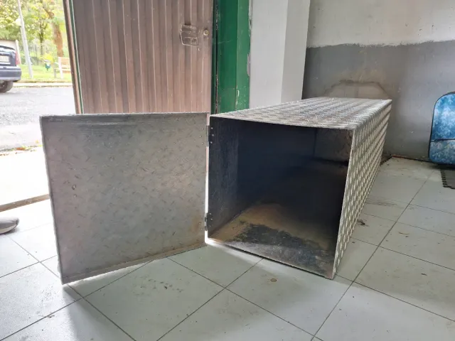 Cajón ideal para los hierros de mercadillos 50x50x160 medidas aproximadamente - Material: Aluminio. - Diseño: Rejilla. - Tapa: Abatible con bisagras.