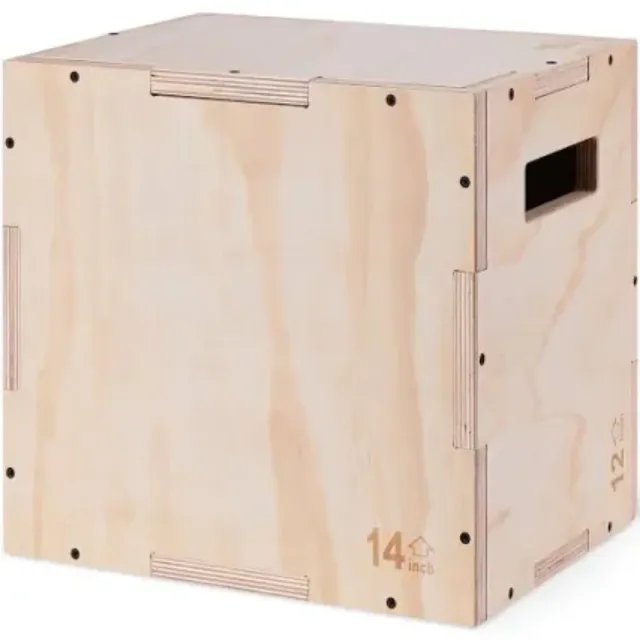 Cajón de madera para entrenamiento pliométrico y CrossFit. Ideal para ejercicios de salto y fuerza.