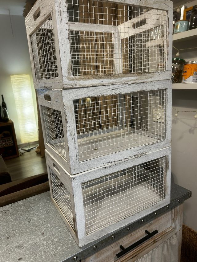 3 cajones apilables. 40x30x 22,5c color blanco gastado.