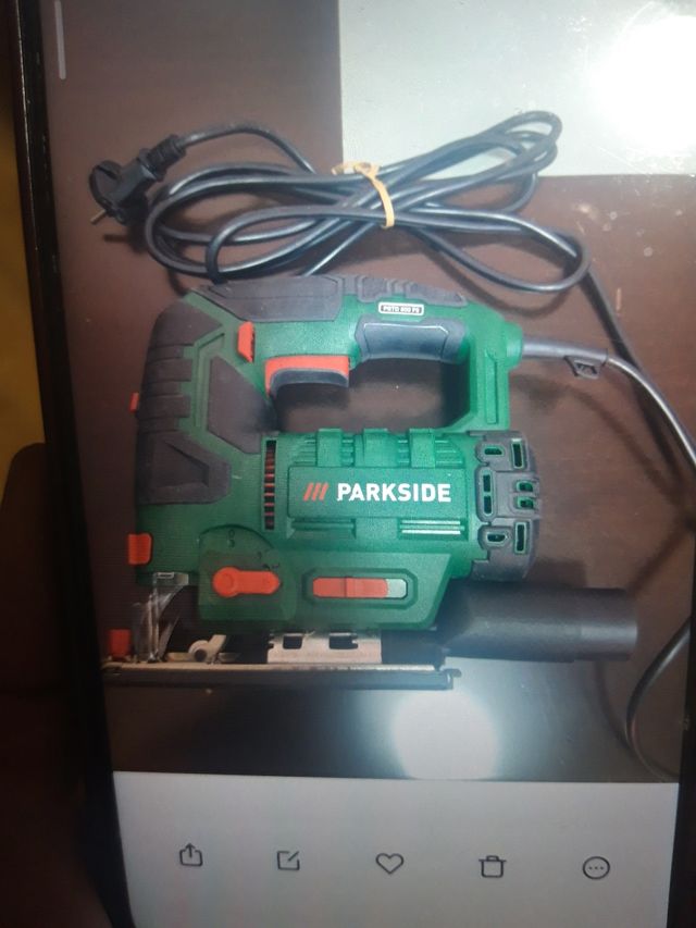 Detalles del productoCaladora eléctrica de la marca Parkside, ideal para trabajos de corte.