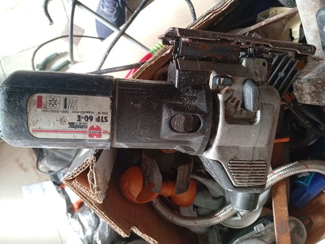Detalles del productoCaladora profesional wurth stp 60 e,está usada pero funciona perfectamente,la doy con una sierra nueva,la pieza manual para cambiar la sierra está rota pero con cualquier alicate se gira sin problema y se cambia,lleva así varios años y no hay problema para cambiar la hoja,es profesional no de bricolaje,base soldada en ángulo cero para que no se mueva.