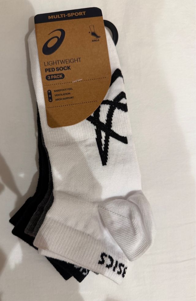 Pack de tres calcetines Asics para hombre, talla 43-46. Diseñados para ofrecer comodidad y soporte.