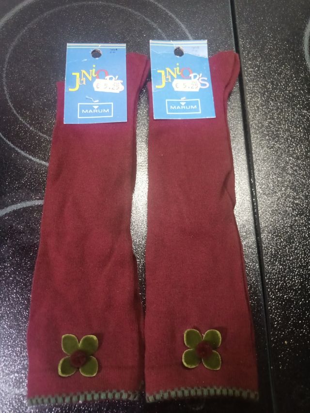 Detalles del productoDos pares de calcetines nuevos a estrenar de color burdeos oscuro. Ideales para niñas.