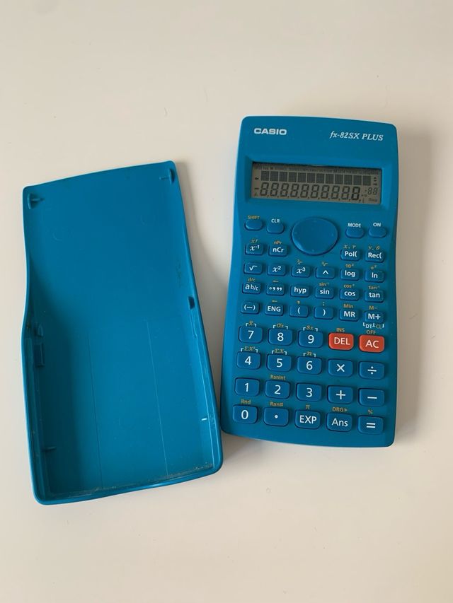 Calculadora Casio Azul modelo fx-82SX PLUS funciona a la perfección con tapa un poco pintada en el exterior