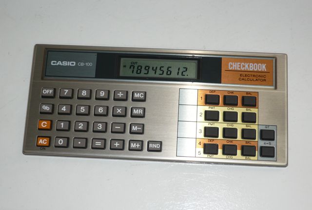 Calculadora electrónica Casio CB-100, modelo Chequera. - Diseño compacto y funcional. - Pantalla LCD. - Teclado numérico y de funciones.