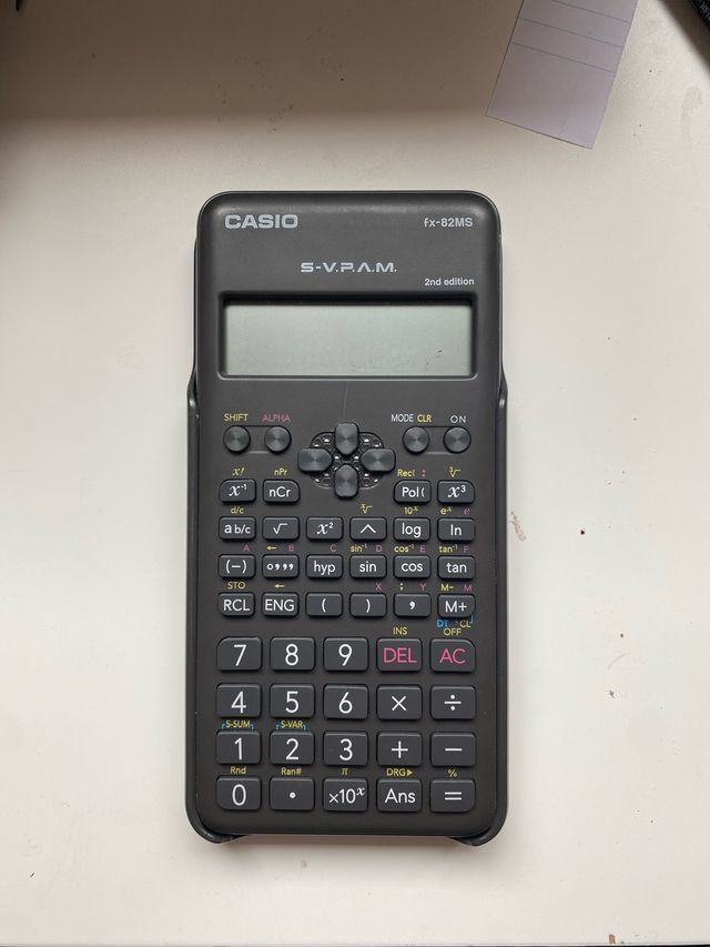 Calculadora científica Casio fx-82MS S-V.P.A.M. de segunda edición. - Color gris oscuro. - Pantalla LCD. - Teclado numérico y de funciones.