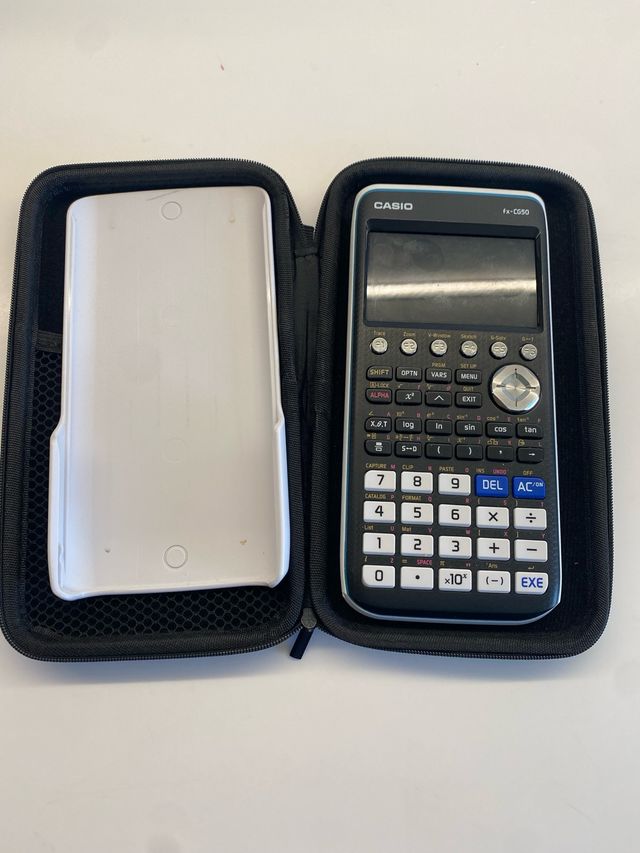 Calculadora gráfica Casio fx-CG50 en su estuche protector. - Pantalla de alta resolución. - Teclado numérico y de funciones. - Incluye estuche de transporte.