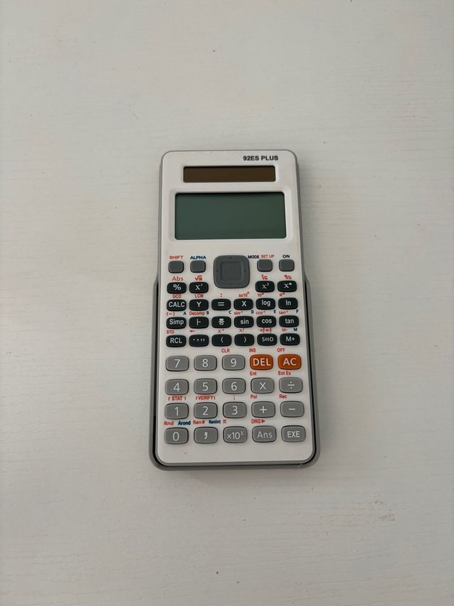 Calculadora científica (Casio) 92ES PLUS en color blanco. - Pantalla LCD. - Teclas de función y numéricas. - Con tapa.