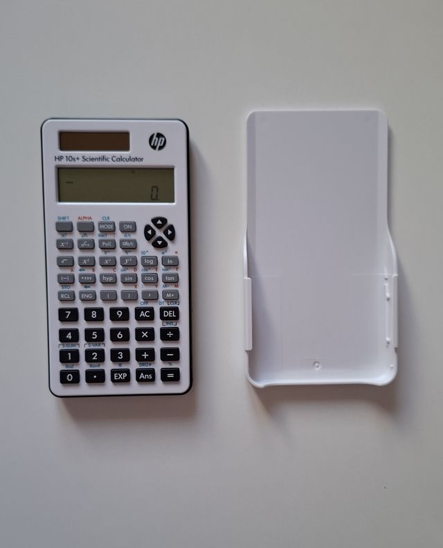 Calculadora científica HP: - Modelo 10s+ - Pantalla LCD - Compacta y ligera - Funciona a pilas y con luz solar - Incluye tapa protectora - Sin uso