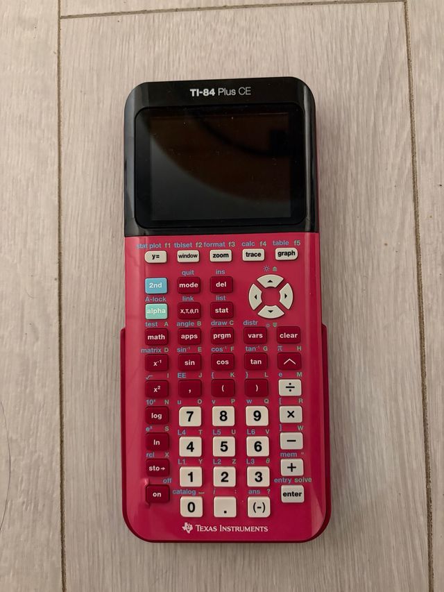 Calculadora gráfica TI-84 Plus CE en color rosa. - Pantalla a color. - Teclado numérico y de funciones. - Botones de navegación.
