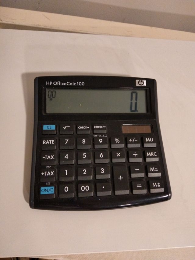 Calculadora de escritorio HP OfficeCalc 100. - Pantalla LCD de dos líneas. - Funciones de memoria M+, M-, MRC. - Teclas de goma duraderas.