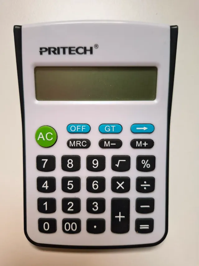 Calculadora básica de la marca PRITECH. - Funciona - Pantalla LCD. - Botones de goma. - Diseño compacto y ligero.
