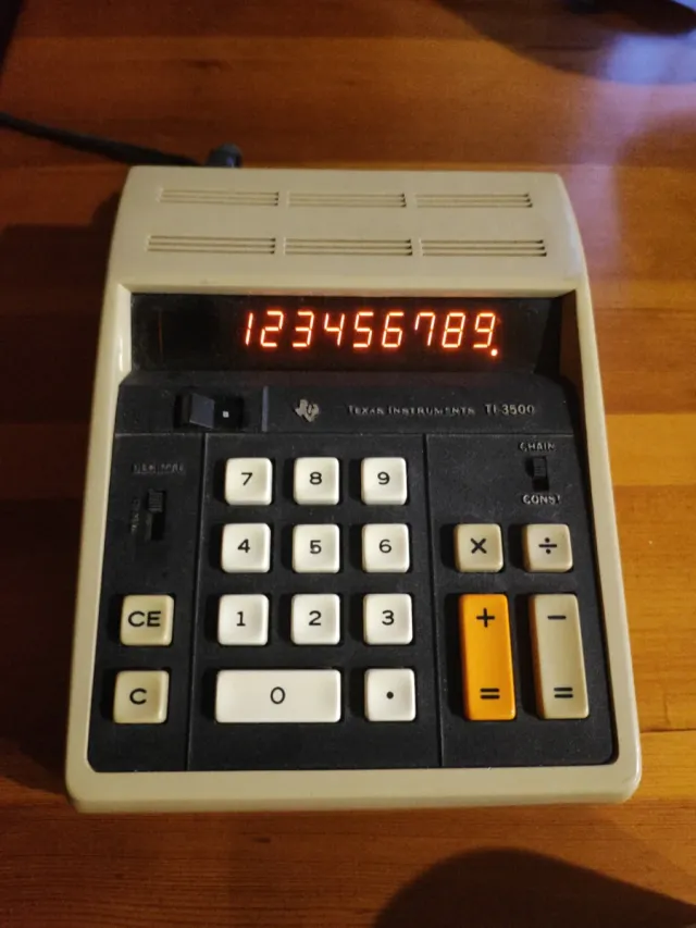 Detalles del productoCalculadora vintage de los años 80, modelo TI-3500 de Texas Instruments. Un clásico para coleccionistas o para quienes buscan un diseño retro.