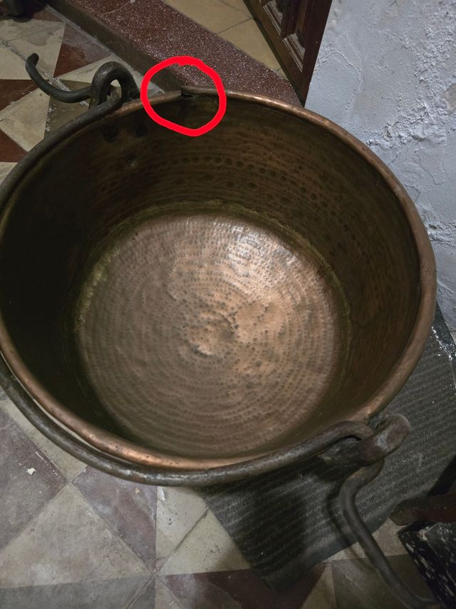 Detalles del productoEste es un caldero antiguo hecho de cobre. Es una pieza con carácter y un diseño tradicional.