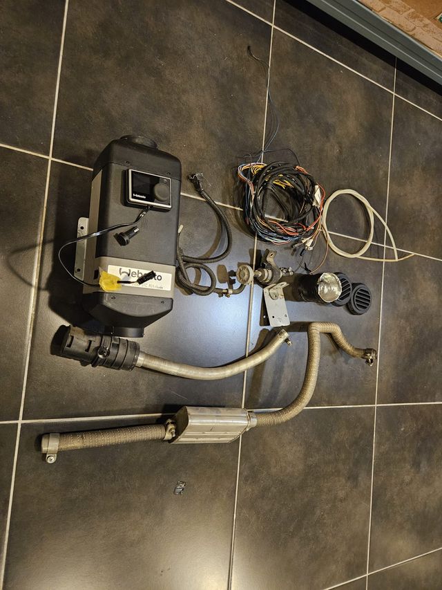 Detalles del productoKit completo en buen estado de calefacción estacionaria Webasto Air Top 2000 STC, con poco uso. Procedente de furgoneta camperizada adquirida que he descamperizado, desmontada funcionando, y desmontada del vehículo con total cuidado, para que no sufra deterioro alguno y pueda ser reutilzilizada sin problemas.