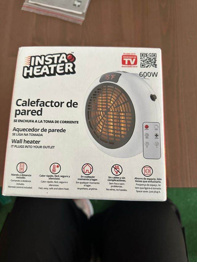 Detalles del productoCalefactor de pared Insta Heater, compacto y fácil de usar.