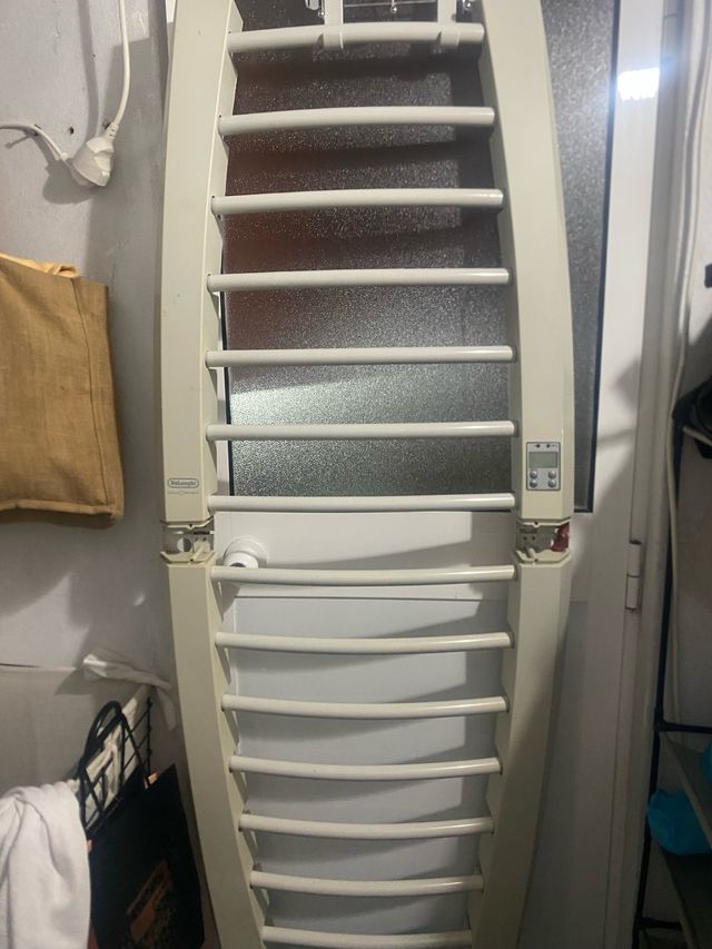 Calefactor de toallas de la marca Delonghi. con 14 barras - Color blanco. - Múltiples barras para colgar toallas. - Panel de control digital.