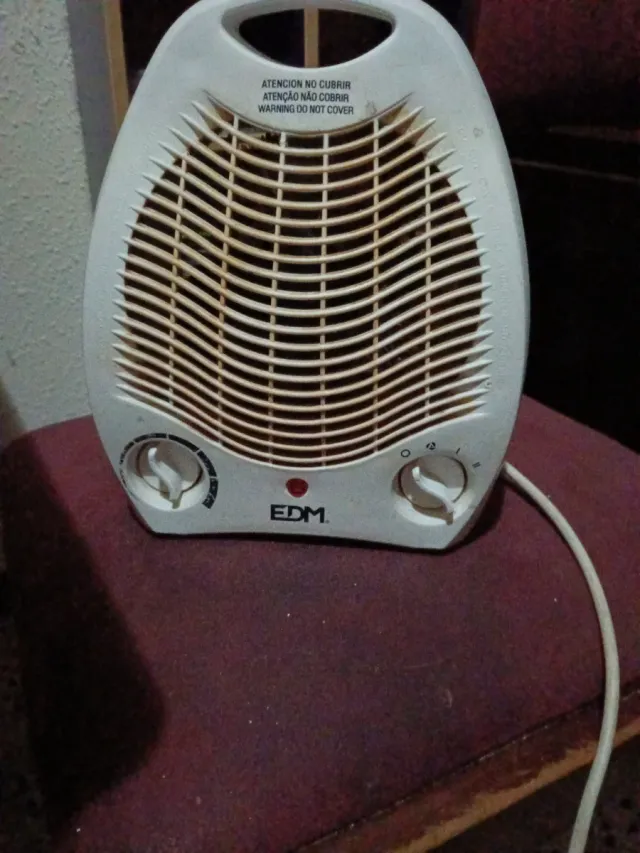 Calefactor de la marca EDM en color blanco. Ideal para calentar estancias pequeñas. - Diseño compacto y portátil. - Dos niveles de potencia. - Termostato regulable.