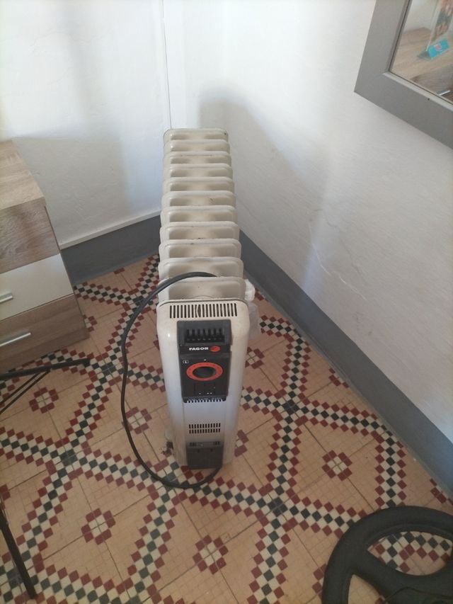 Detalles del productoCalefactor eléctrico de la marca Fagor, en buen estado. Es un radiador de aceite de color beige claro.