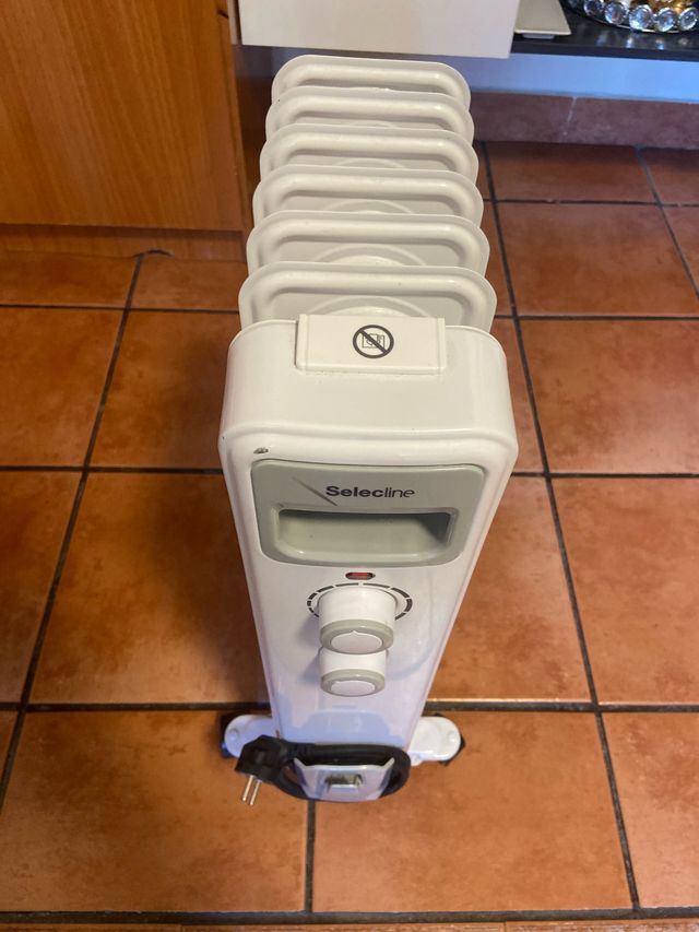 Calefactor eléctrico Selecline de 9 elementos. - Color blanco. - Ruedas para fácil movilidad. - Panel de control con termostato.