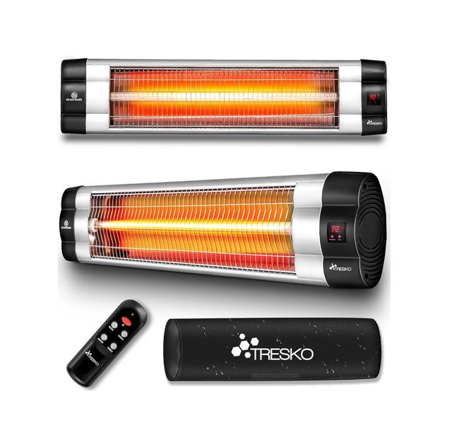 Detalles del productoTRESKO Calefactor por Infrarrojos para Terraza | 2500W + Control Remoto | Estufa Radiante de Pared 3 Temperaturas | Radiador Eléctrico para Exterior e Interior | Calentador de Cuarzo con Pantalla LED