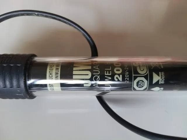 Calentador para acuario de la marca Juwel. - Potencia de 200W. - Voltaje: 220V-240V. - Longitud del cable: 80cm.