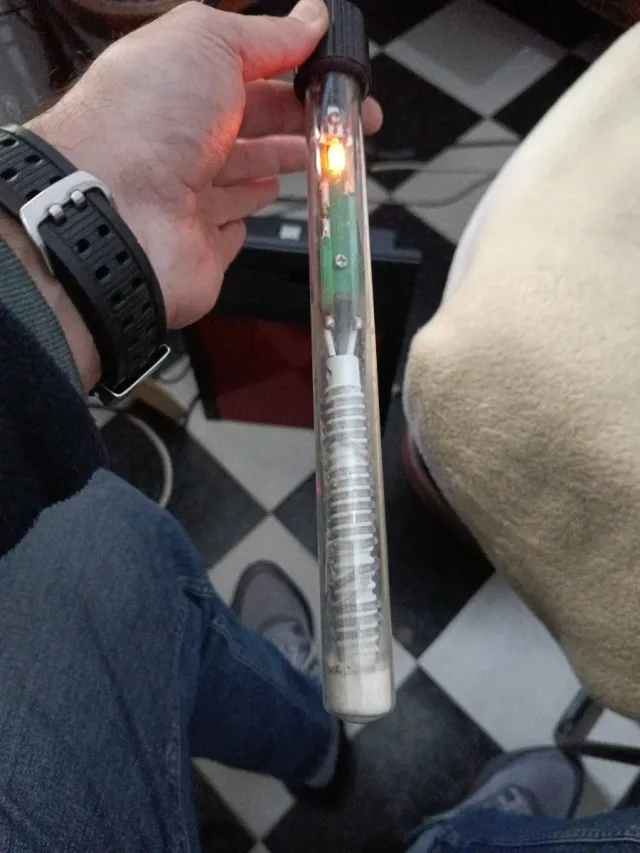 Calentador de resistencia para acuario. Incluye un indicador luminoso. - Diseño tubular de cristal. - Elemento calefactor en espiral.