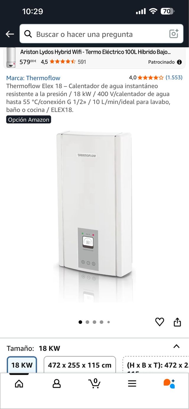 Calentador Agua Instantáneo Thermoflow Elex 18