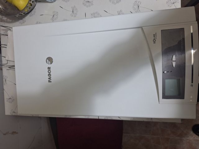 Calentador de agua Fagor - Diseño blanco. - Panel de control con pantalla digital y botones. -