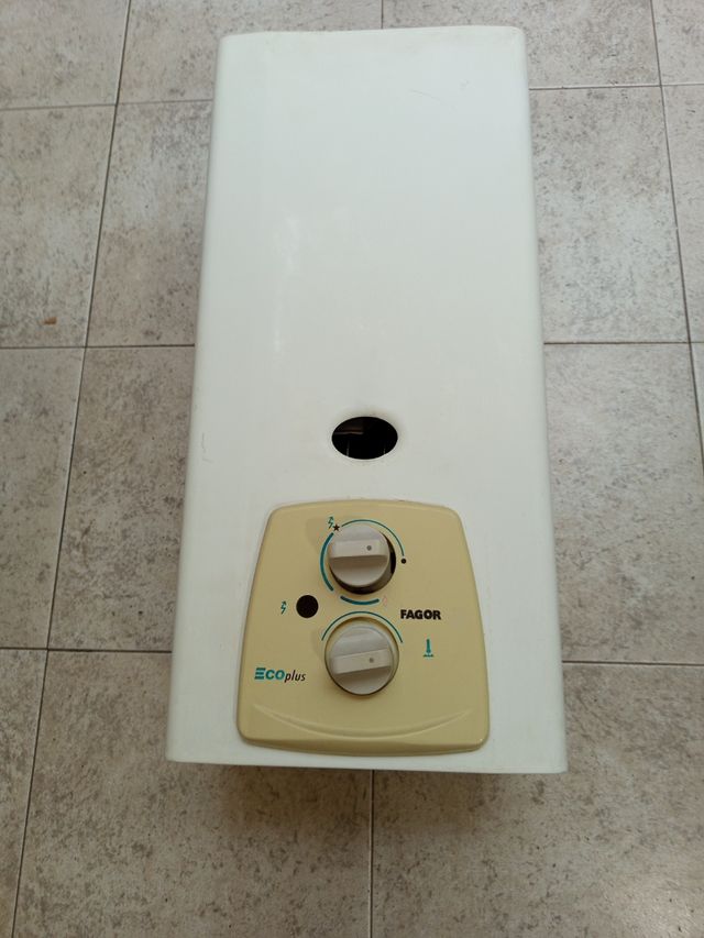 Calentador de agua de la marca Fagor, modelo Ecoplus. - Control manual de Y 6 MESES DE GARANTÍA temperatura. - Diseño compacto y funcional.