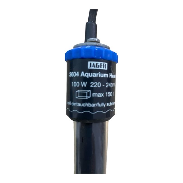 Calentador para acuario Jager de 100W. - Modelo 3604. - Voltaje 220-240V. - Máximo 150 litros. - Totalmente sumergible.