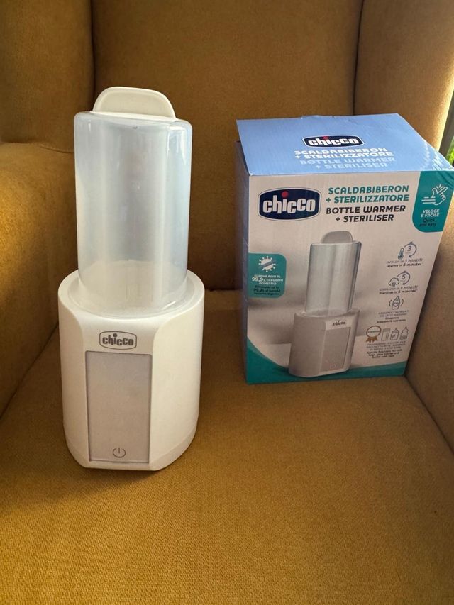 Detalles del productoCalentador de biberones y esterilizador de la marca Chicco. Diseñado para calentar y esterilizar biberones de forma rápida y sencilla.