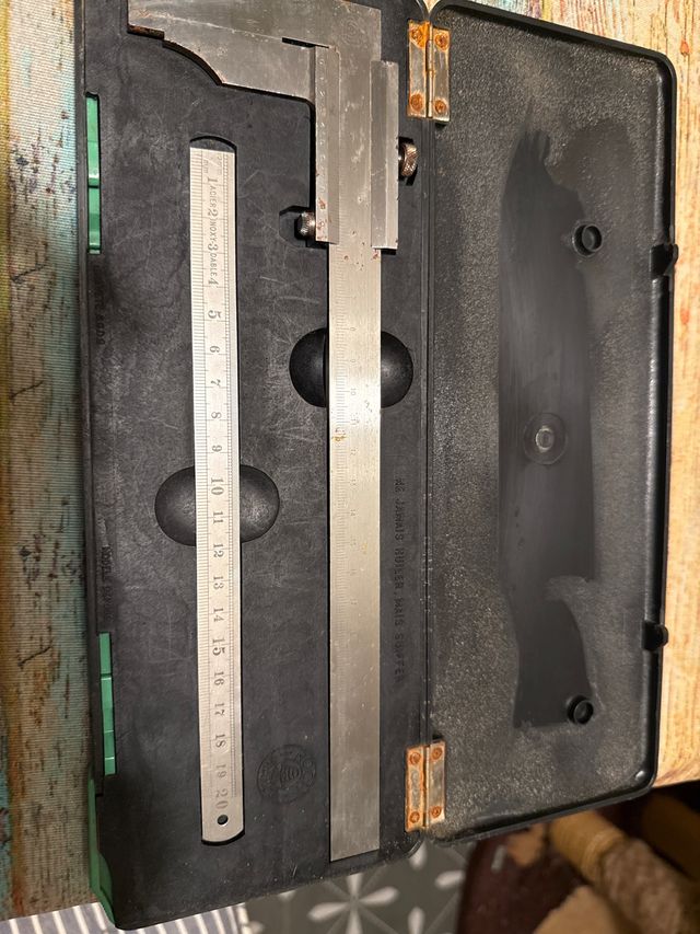 Herramienta de medición de precisión de origen francés. - Fabricado en metal. - Incluye regla graduada.