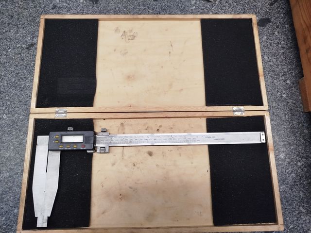 Detalles del productoCalibre digital de exteriores con un rango de medición de 0 a 300mm. Incluye su caja de madera para guardarlo.