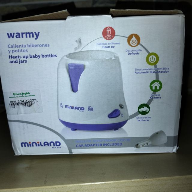 calienta biberones y potitos, lleva adaptador para.loa.dos y un adaptador para poder calentarlo en el mechero del coche.usado un par de veces