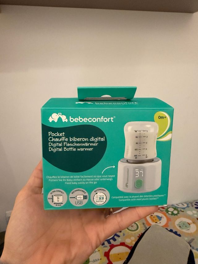 Detalles del productoCalienta biberones digital Bebeconfort, ideal para usar en casa o de viaje.