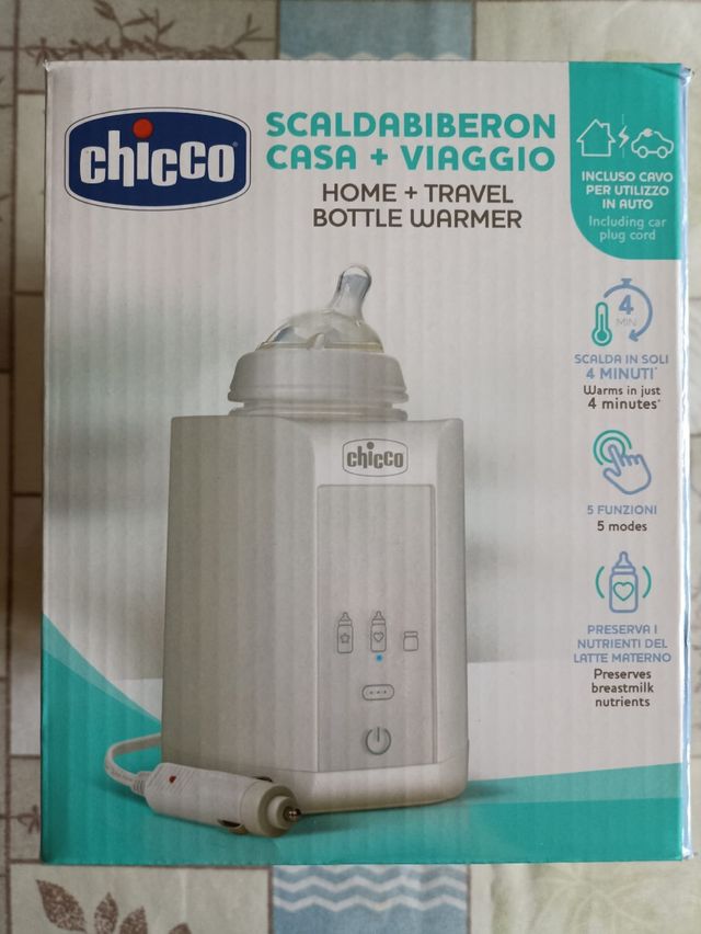 Detalles del productoCalienta biberones Chicco, casa y viaje. Calienta leche materna, leche de fórmula y potitos con los tres programas que lleva.