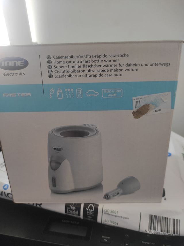 Detalles del productoCalienta biberones y potitos marca jane,nuevo sin estrenar,solo se ha comprobado que funciona se adquirió en 2021 sirve para usarlo en casa como de viaje puesto que se puede conectar al mechero del coche con el adaptador que va incluido,su precio original es de 67'95€. Precio negociable