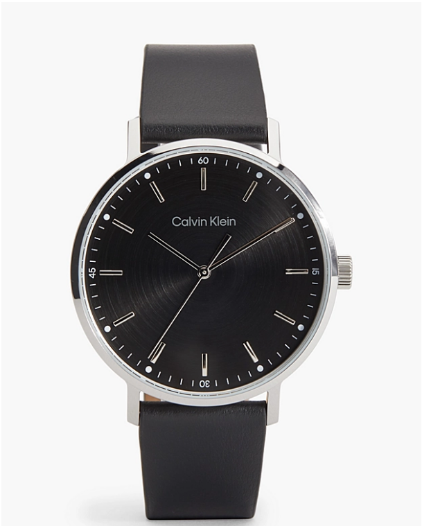 Calvin Klein Reloj Correa Piel Negro y Plata