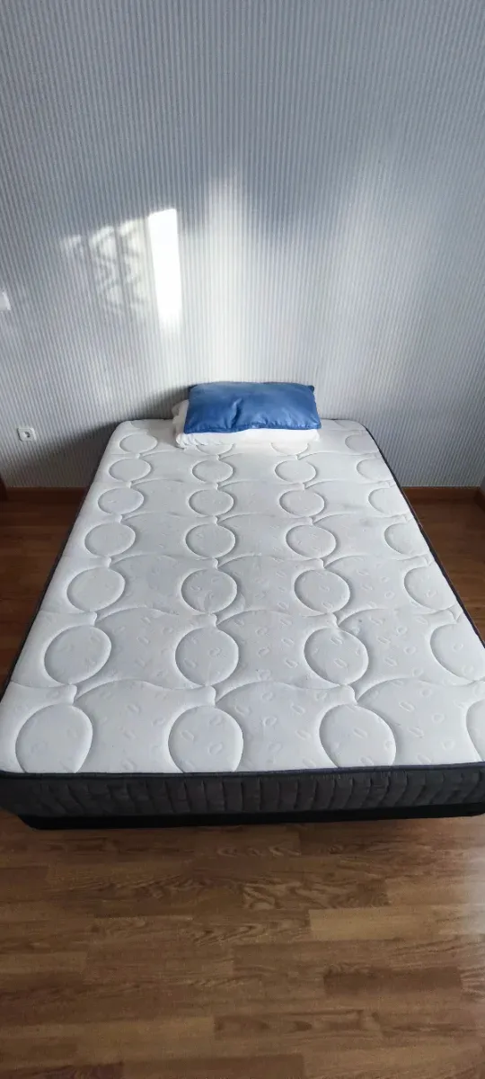 --esta prácticamente nueva, la compré para mi hijo y la uso un mes. Colchón viscoelástico con la dureza del primer día.