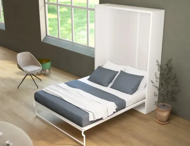 Detalles del productoCama abatible vertical con somier de láminas interior.MEDIDAS PARA COLCHON DE 135: 149 DE ANCHO, FONDO ESTANDO CERRADA 34,5 Y 202 ESTANDO ABIERTA, sistema abatible con pistones .Con rebaje en rodapié para un ajuste perfecto a la pared.