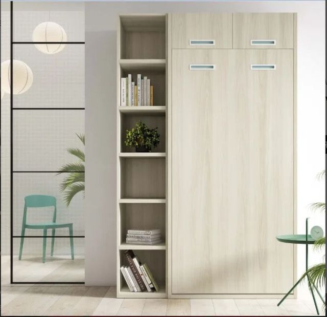 Detalles del productoCama abatible con somier de láminas interior.MEDIDAS DE ANCHO:97, FONDO ESTANDO CERRADA 57 Y 221 ESTANDO ABIERTA, sistema abatible con apertura elevable con pistones.