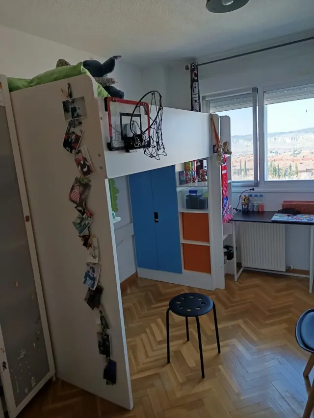 Cama alta de Ikea modelo Stuva. 150x200 cm Ideal para optimizar el espacio. Muy poco usada. Se vende por cambio a cama baja. El colchón no entra en la venta