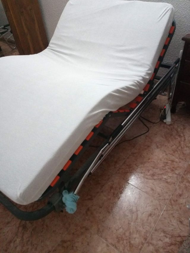 cama articulada con el colchón, con valla a ambos lados y mando a distancia