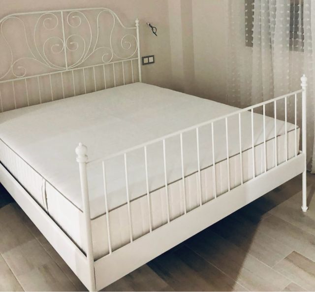 Cama completa estructura metal en color blanco.
