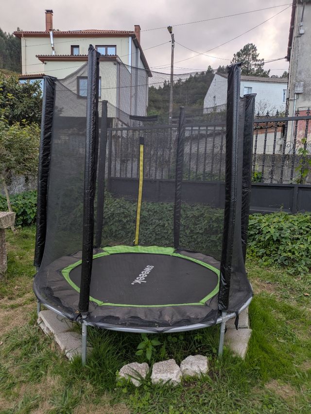 Detalles del productoCama elástica para niños, ideal para jugar al aire libre. Cuenta con una red de seguridad para mayor protección. Como nueva solo usada 6 meses