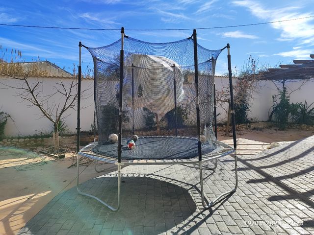 Detalles del productoEstructura, muelles y suelo donde se salta en muy buen estado. Los corchos de las barras verticales, las esponjas verdes y la cremallera están notablemente deteriorados