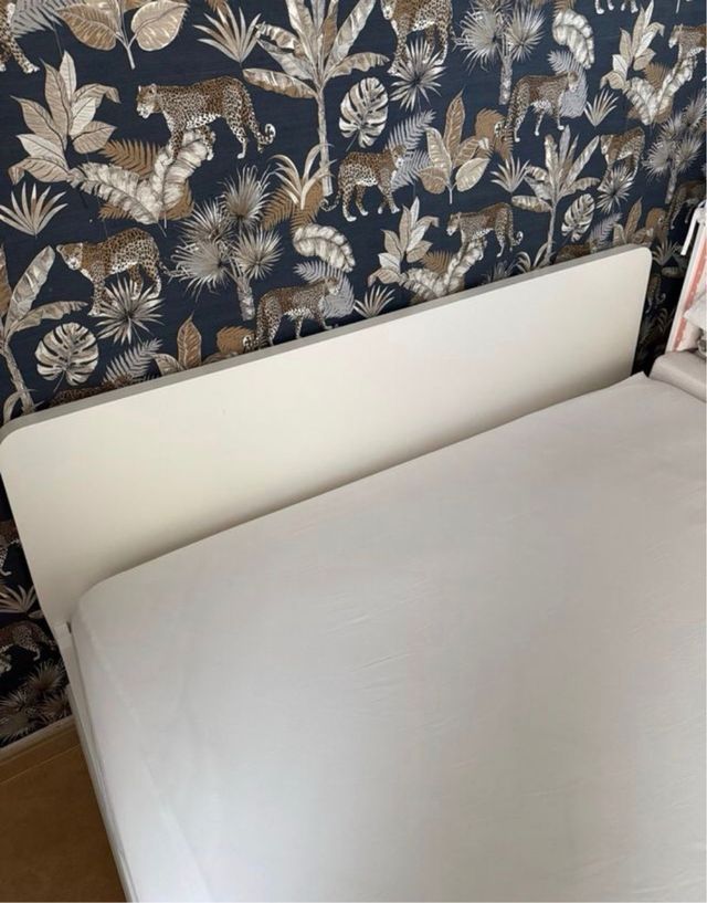 Detalles del productoCama de matrimonio de Ikea con somier y cajones de almacenaje.