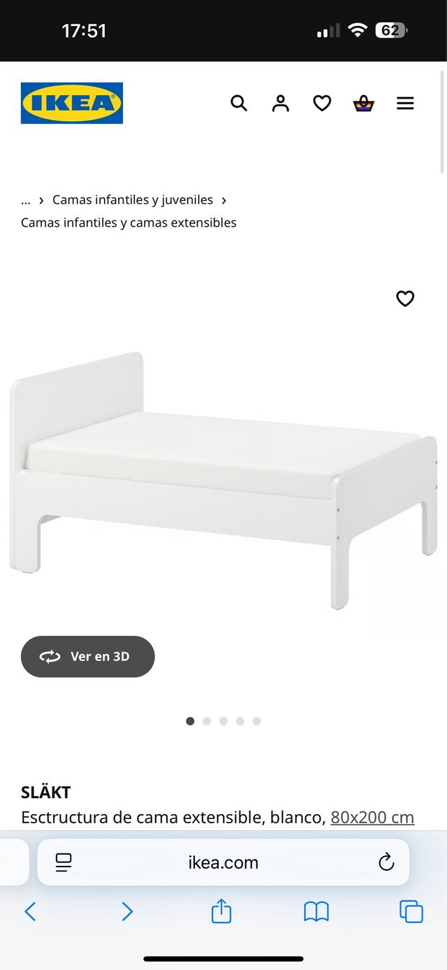 Detalles del productoEstructura de cama extensible SLÄKT de IKEA, en color blanco. Es perfecta para una habitación infantil.